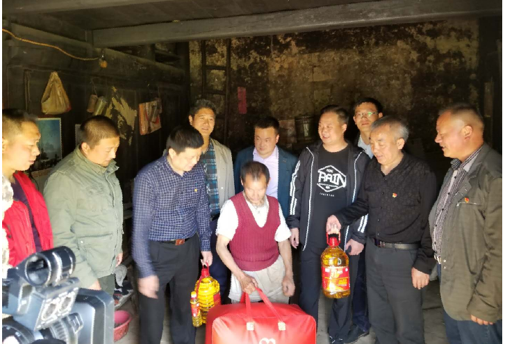 中共湖北武當山太和索道有限公司支部委員會書記陳光升聚焦精準扶貧,慰問武當山豆腐溝村五保戶羅光海、羅光喜弟兄及羅光成。